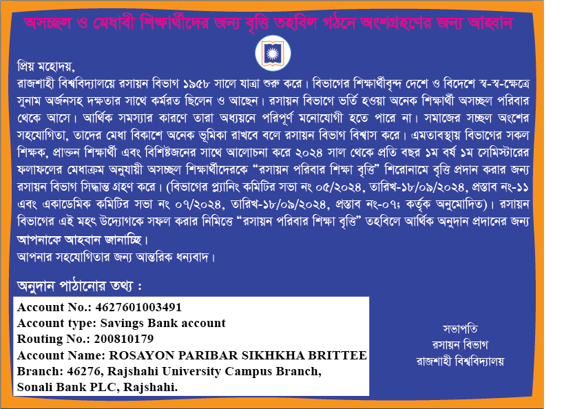 রসায়ন পরিবার শিক্ষা বৃত্তি প্রদানে সহায়তা করেছেন