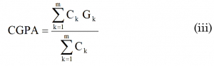 where, m is the total number of years being considered, Ck is the total number of credits registered during the kth year and Gk is the YGPA earned in that particular year.