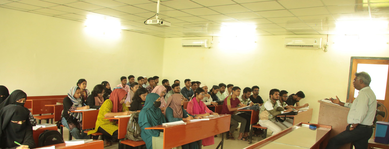 When students get admitted into LLB (Honours) programme, most of them leave their home for the first time and join a totally new environment. Teachers at this Department take special care of those newcomers in the class room, in small tutorial groups as well as on a one-to-one basis. Students get advice on their academic matters and they are also provided with counselling, where and if necessary. Frequent in-course examinations are taken by all course-teachers to ensure that students keep themselves updated in line with the topics taught in the class rooms. Teachers are committed to provide the learners with feedback on an individual basis after examining their in-course exam-scripts so that they can overcome their weaknesses in analysis of concerned issues, language and exam-preparation.