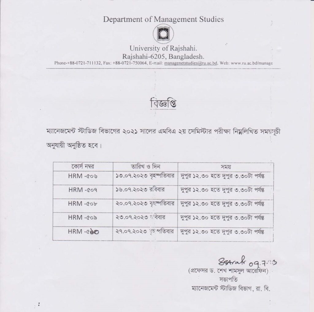 এমবিএ ২য় সেমিস্টার ২০২১ এর পরীক্ষা শুরু ১৩ জুলাই ২০২৩ তারিখ ।