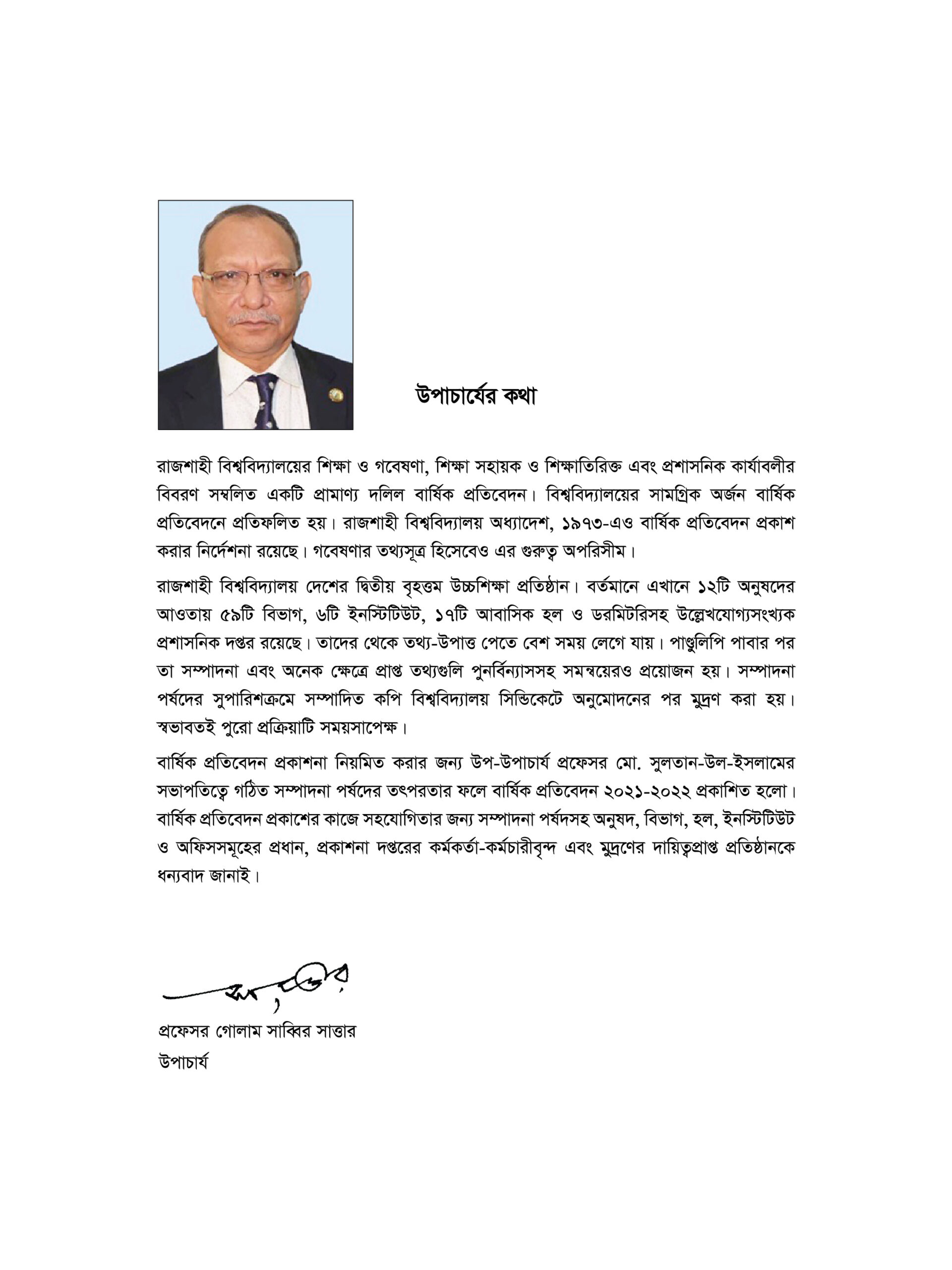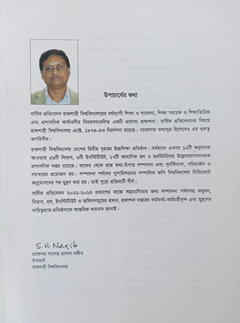 রাজশাহী বিশ্ববিদ্যালয়ের বার্ষিক প্রতিবেদন ২০২২-২৩ প্রকাশনা দপ্তরের ওয়েবসাইটে প্রকাশিত হয়েছে। আগামীতে প্রতিবছর এই প্রতিবেদন রাজশাহী বিশ্ববিদ্যালয়ের মূল ওয়েবসাইটের সাবডোমেইন হিসেবে প্রকাশনা দপ্তরের ওয়েবসাইটে নিয়মিত প্রকাশিত হবে। অনুগ্রহ করে পিডিএফ আকারে প্রতিবেদন ডাউনলোড করার জন্য এই লিংক [বার্ষিক প্রতিবেদন ২০২২-২৩] এ ক্লিক করুন।