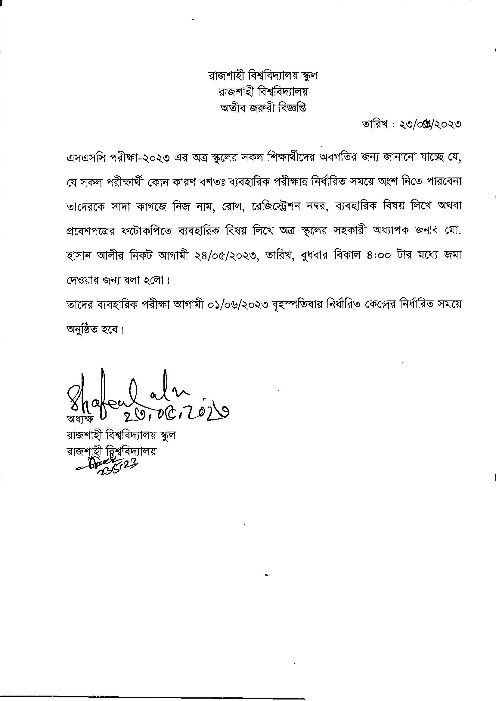 Notice for SSC Examee 2023