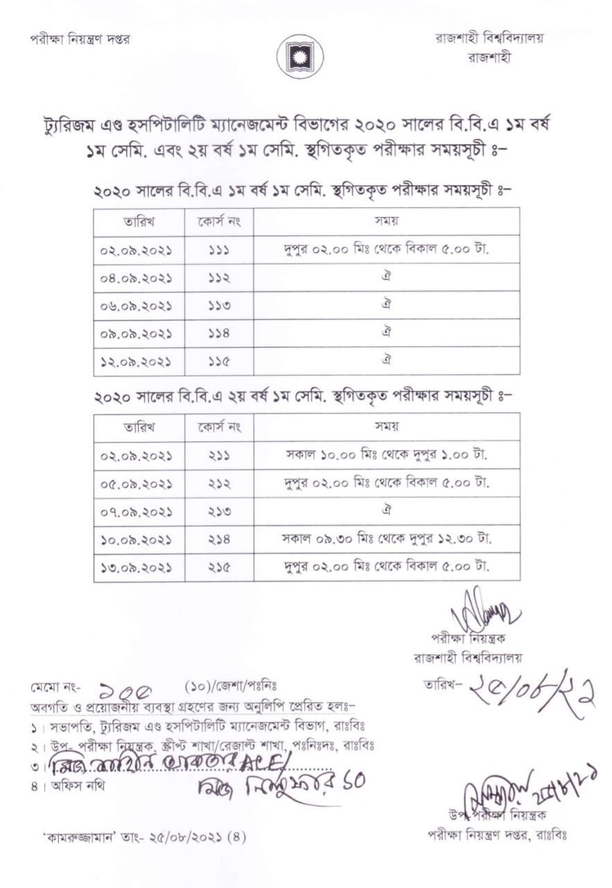 Exam of BBA 1st Year 1st Semester-2020 and 2nd Year 1st Semester-2020 Will Start on 02 September 2021
